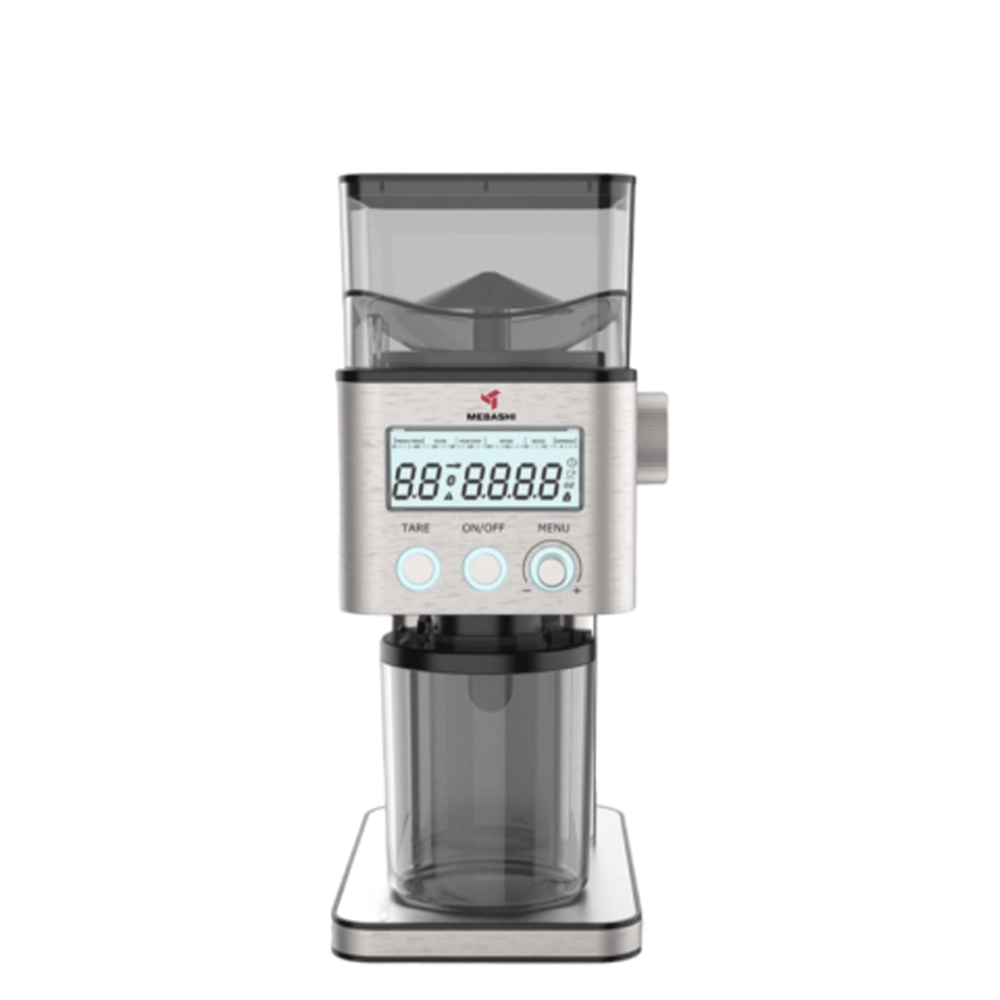 یکی از امکانات جذاب آسیاب قهوه مباشی مدل ME-CG2302، ترازوی دیجیتال بلوتوثی آن است. این ترازو زیر مخزن قهوه آسیابشده قرار گرفته و وزن دقیق قهوه را با دو واحد اونس و گرم نمایش میدهد. این قابلیت به شما امکان میدهد مقدار دقیق قهوه موردنیاز خود را برای هر نوشیدنی تنظیم کنید.